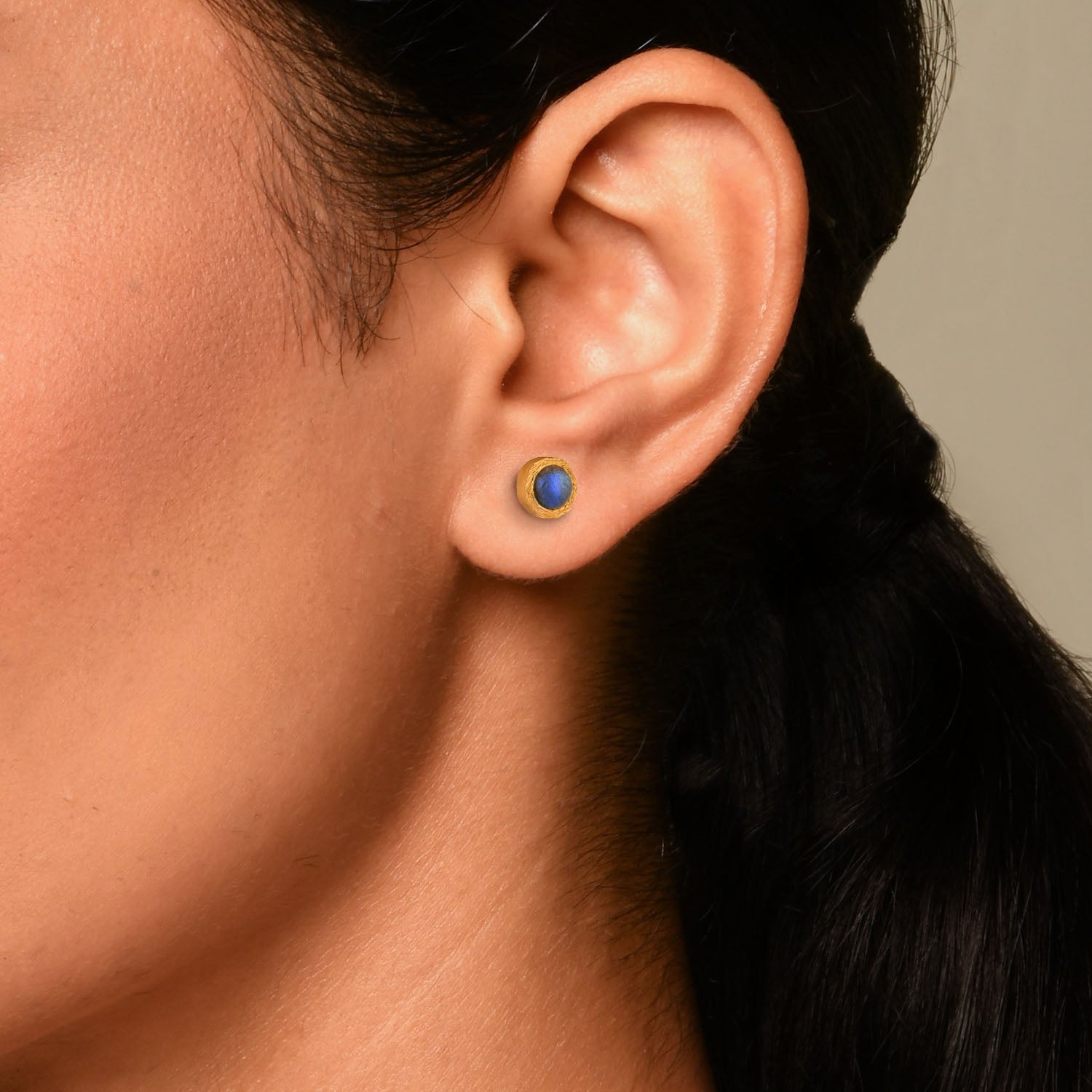 PRODUCT DETAILS: Handcrafted in 925 sterling silver with gold plating, studded with labradorite.